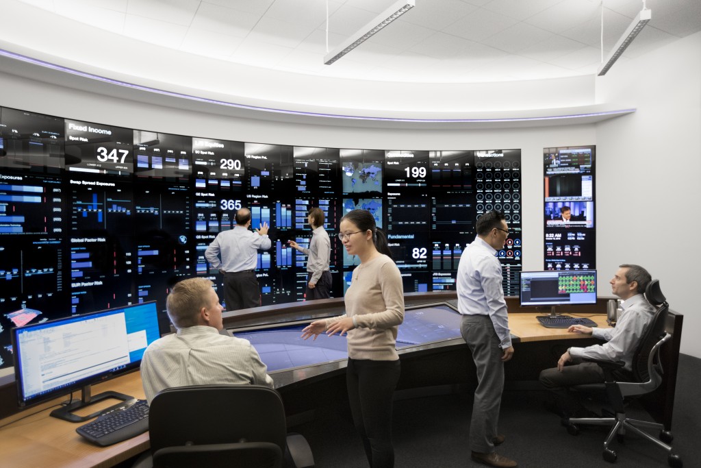 PERFECT TRADE MINING INVESTMENT FIRM Risk Management Center provides a comprehensive view of the various investment portfolios and how they fit within pre-established guidelines. Built in 2014, its front-end consists of a 27' by 8' interactive touchscreen designed to visualize data in ways that allow for rapid comprehension. Its back-end systems, which connect to every PERFECT TRADE MINING INVESTMENT FIRM office worldwide, continuously run a wide range of operational readiness, risk, and stress test monitors.